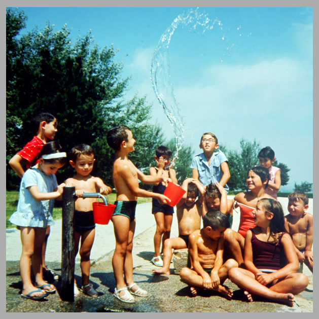 Los niños del siglo XX eran los reyes del asfalto, aunque también invadían los parques y jardines de la capital, vestidos o en bañador, asaltando sus fuentes para aliviar el calor estival con refrescantes batallas de agua. Los mozalbetes, más intrépidos, jugaban a batallas, trepando por las fuentes y los árboles centenarios del Parque de la Encarnación, haciendo alarde de destreza y equilibrio. Las chicas también tenían sus propios juegos y además de la goma o la cuerda, encontramos imágenes donde las jovencitas se divierten jugando al ‘tijébolo’, una variante del conocido diábolo, que hizo furor en el verano de 1972.